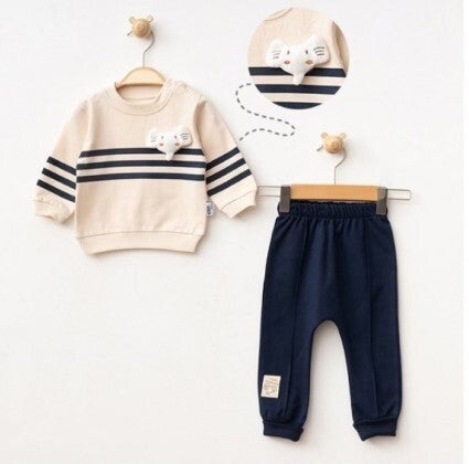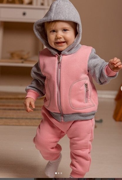 Stijlvol pak gemaakt van drie-draads joggingstof met een zachte binnenkant, aangenaam en glad aanvoelend, waardoor de huid van het kind kan ademen en niet geïrriteerd raakt.