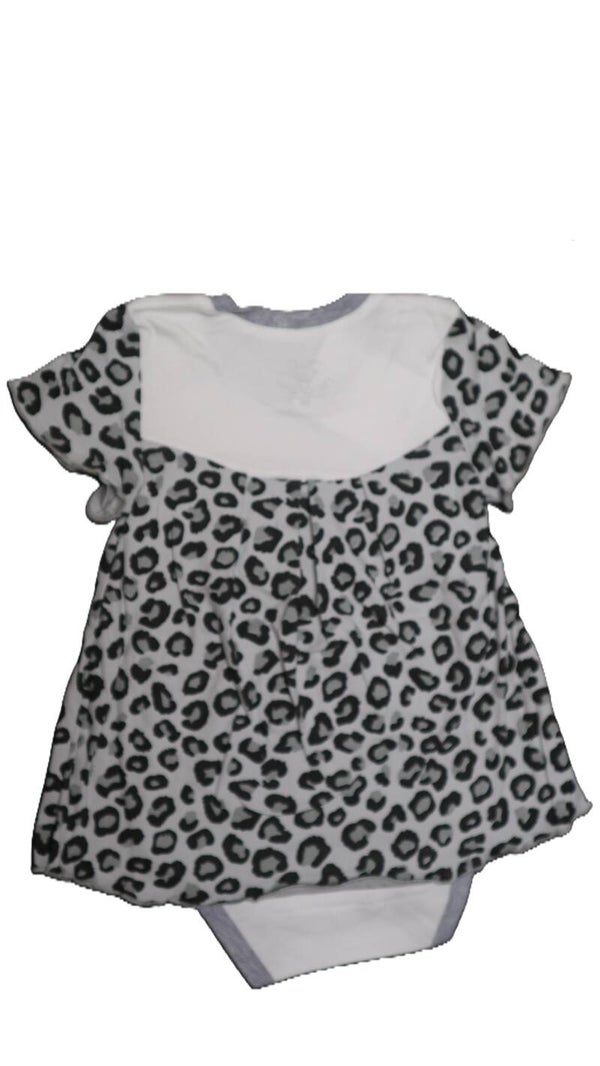Gemaakt van 100% katoen, gebreide interlock "penne", aangenaam en glad om aan te raken, waardoor de huid van de baby kan ademen en niet geïrriteerd raakt. Het kledingstuk heeft een ruime pasvorm en korte mouwen.