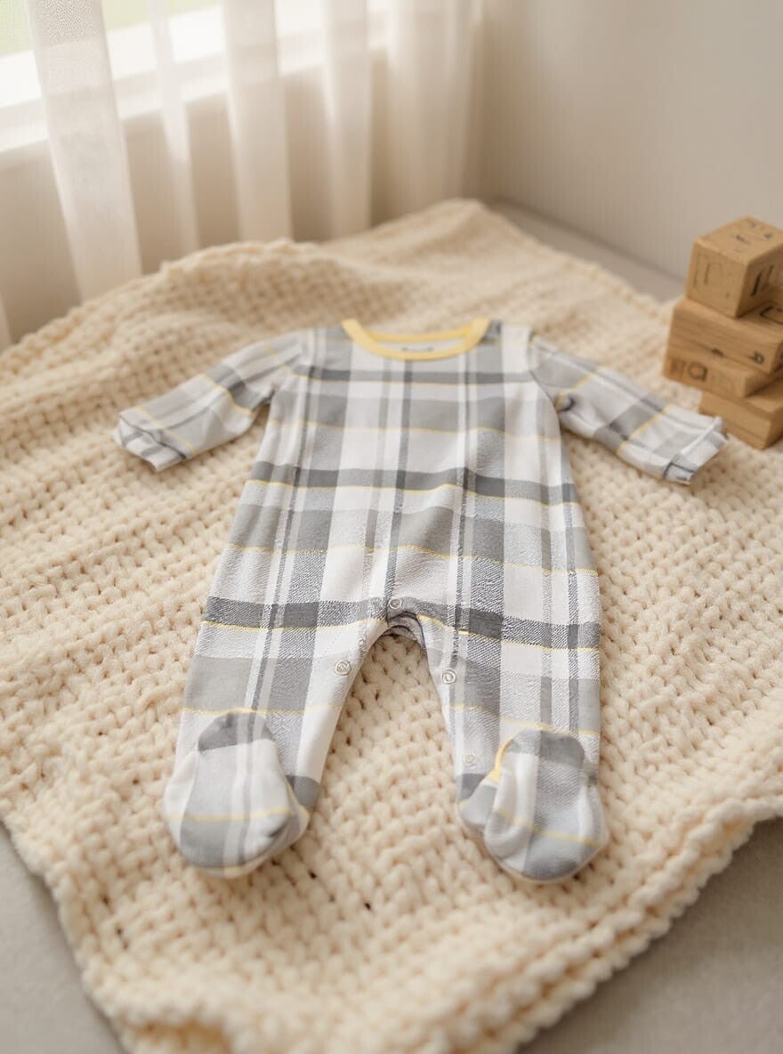 Details: Geel en Oranje model: knopen over volledige lengte. Geruite babyromper en wit met dino print model: knopen op schouder. In deze kleding voelt jouw kindje zich comfortabel, gezellig en staat altijd in het middelpunt van de belangstelling!