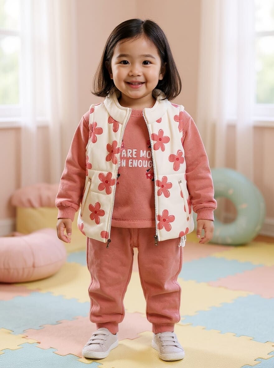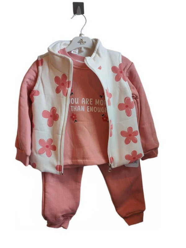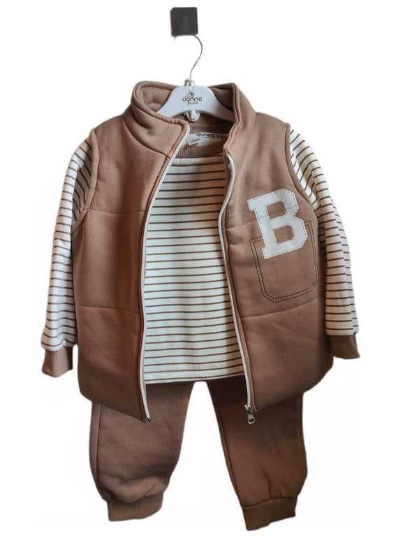 Dit 3-in-1 kinderpakje bestaat uit een broekje, een truitje en een gilet met ritssluiting. Gemaakt van zacht en warm fleece-materiaal, perfect voor dagelijks gebruik. Dit pakje biedt comfort en bewegingsvrijheid, ideaal voor spelletjes en outdoor activiteiten