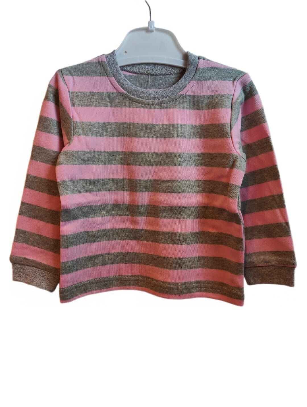 De interessante kleurcombinatie van deze model verdient aandacht – een combinatie van grijs-roze strepen en melange.