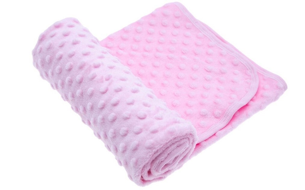 Zacht en comfortabel dekentje van nout, verkrijgbaar in de kleuren blauw en roze. Gemaakt in Turkije — ideaal voor baby’s en kinderen.